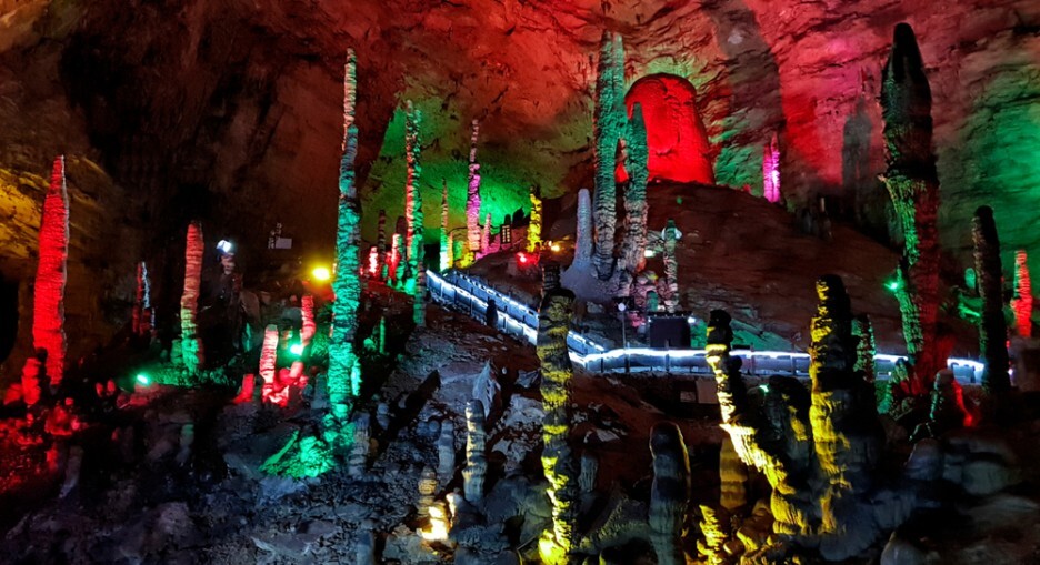 오색찬란한 조명으로 꾸며놓은 동굴은 동굴에서 배도 타고 다니만큼 크고 웅장합니다.